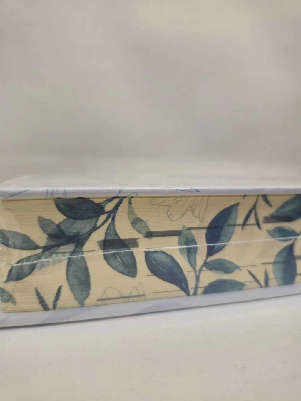 Além do conteúdo, o acabamento é um grande diferencial: capa dura com flores azuladas, bordas das páginas decoradas ou em cor especial, fitilho marcador e letra em tamanho confortável para leitura. Essa combinação une beleza, funcionalidade e espiritualidade em um só volume.